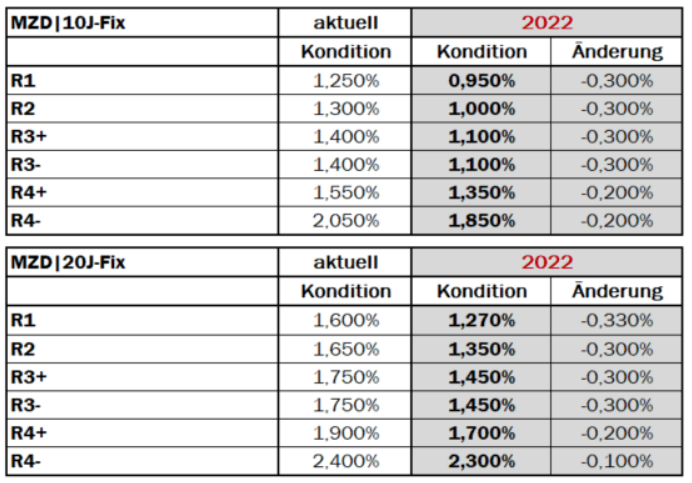 Es freut uns ganz besonders Ihnen mitteilen zu dürfen, dass wir ab Anfang 2022 für sämtliche Finanzierungsprodukte deutlich verbesserte Konditionen anbieten können.