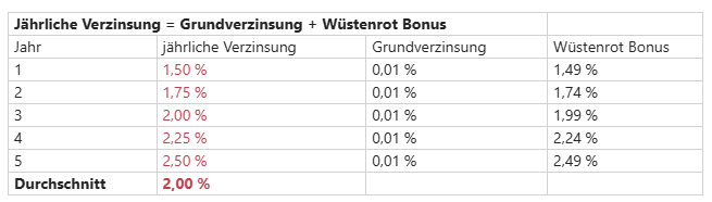 Mit einem durchschnittlichen Zinssatz von 2,00 % p.a. können wir unseren Kund:innen weiterhin ein großartiges Produkt anbieten.