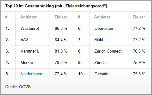 ein Top Ergebnis brachte eine vom ÖGSV - Gesellschaft für Verbraucherstudien durchgeführte Testreihe für die Wüstenrot Gruppe hervor.
