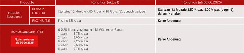 Bausparen: Konditionsanpassung Flexibles Bausparen KLASSIK (T6) und Flexibles Jugendbausparen (T16) per 03.06.2025
