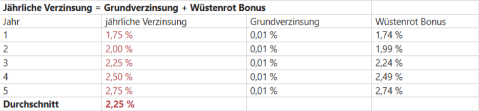 Mit einem durchschnittlichen Zinssatz von 2,25 % p.a. können wir unseren Kund:innen weiterhin ein großartiges Produkt anbieten.