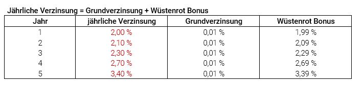 (= jährlich steigender Zinssatz von 2,00 % p.a. im ersten Jahr bis 3,40 % p.a. im fünften Jahr).