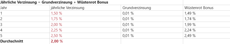 Mit einem durchschnittlichen Zinssatz von 2,00 % p.a. können wir Ihnen weiterhin ein großartiges Produkt anbieten.