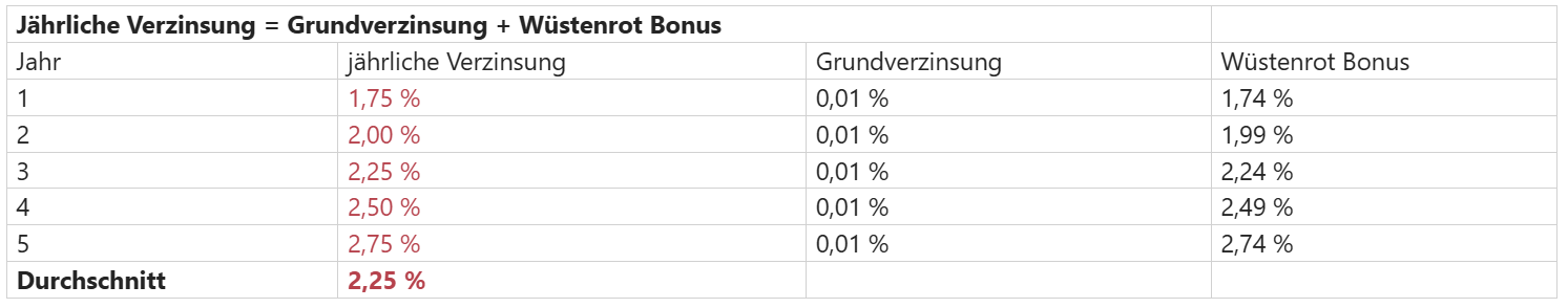 Mit einem durchschnittlichen Zinssatz von 2,25 % p.a. können wir unseren Kund:innen weiterhin ein großartiges Produkt anbieten.