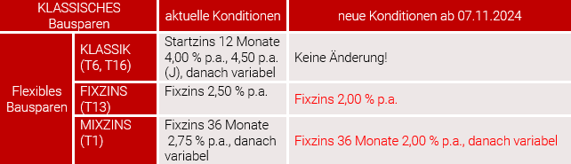 Klassisches Bausparen: Anpassung der Verzinsung | Änderung Allgemeine Bedingungen für das Bauspargeschäft per 07.11.2024