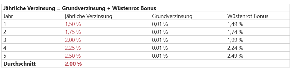 Mit einem durchschnittlichen Zinssatz von 2,00 % p.a. können unsere Kund:innen weiterhin von unserem großartigen Produkt profitieren.