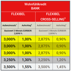 Voraussetzung für die Gültigkeit der in der Grafik angeführten Aufschläge ist, dass der flexible Anteil mindestens 50 % der gesamten Finanzierungssumme umfasst.